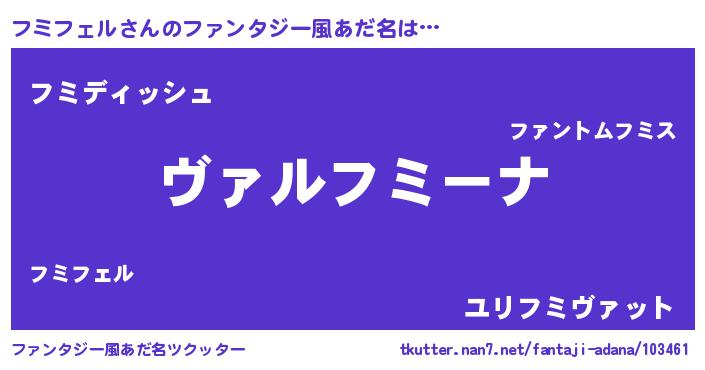 | 男性向けラノベタイトル風あだ名 | 『この素晴らしい世界にフミフェルを!』 |