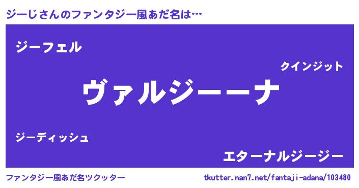 | 男性向けラノベタイトル風あだ名 | 『この素晴らしい世界にジーじを!』 |