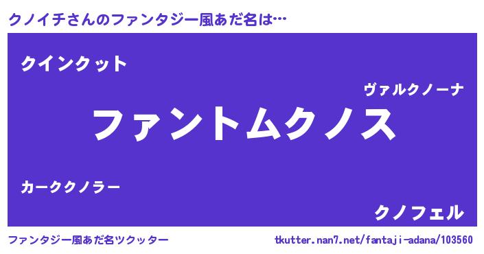 | ヒーロー風カッコイイあだ名 | 『暗黒騎士クノ』『正義の使者クノイチ』 |