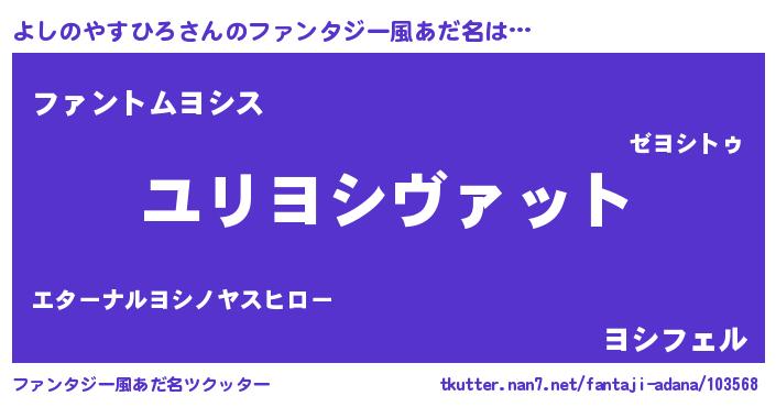 | 男性向けラノベタイトル風あだ名 | 『転生したらよしのやすひろだった件』 |