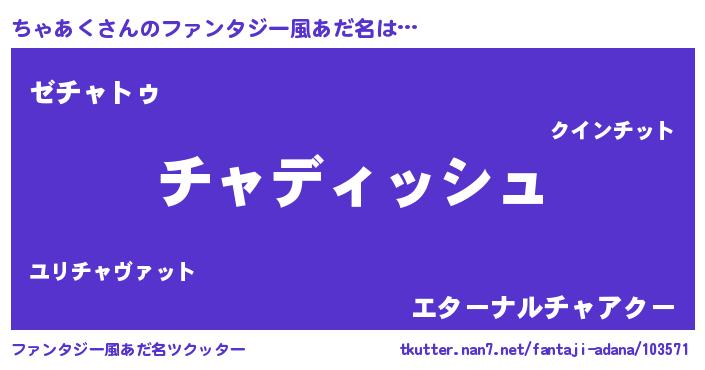 | 意味不明あだ名 | 『永久保存ちゃあく』『自称ちゃあく』 |