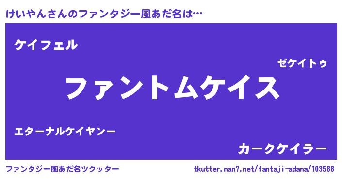 | ヒーロー風カッコイイあだ名 | 『炎刃騎士ケイ』『スーパーケイヤン』 |