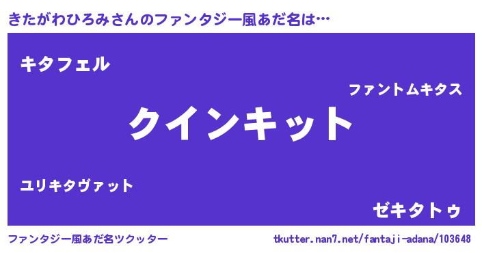 | 女子向けラノベタイトル風あだ名 | 『きたがわひろみ夫妻のなれそめ』 |
