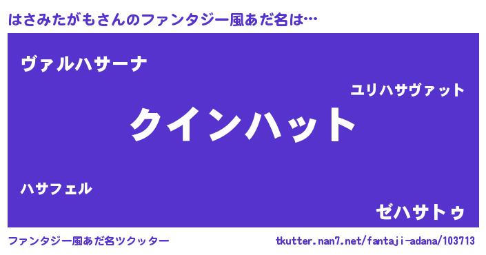 | 男性向けラノベタイトル風あだ名 | 『ノーゲーム・ノーハサミタガモ』 |