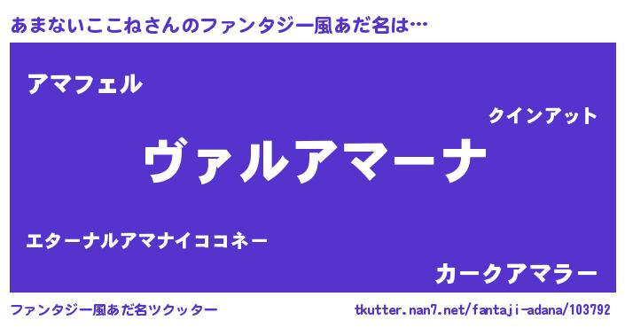 | 男性向けラノベタイトル風あだ名 | 『この素晴らしい世界にあまないここねを!』 |
