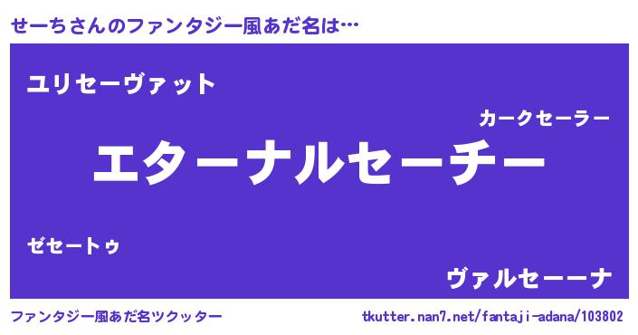 | 女子向けラノベタイトル風あだ名 | 『せーちの雑貨屋さん』『闇のせーち』 |