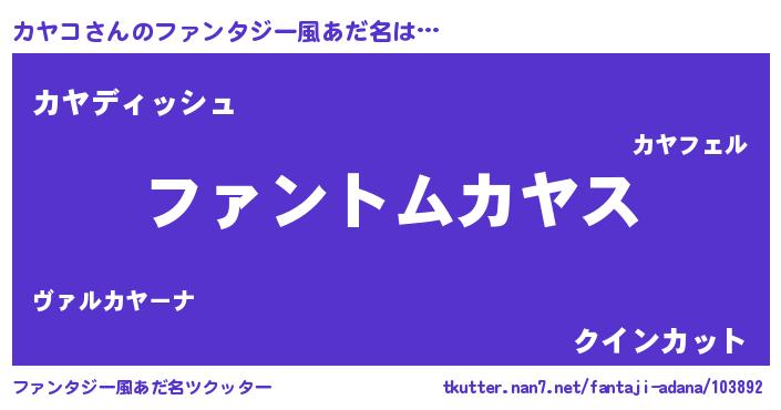 | 男性向けラノベタイトル風あだ名 | 『ダンジョンにカヤコを求めるのは間違っているだろうか』 |