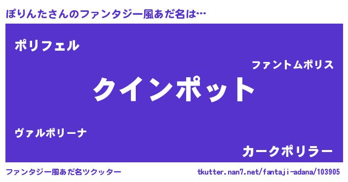 | ヒーロー風カッコイイあだ名 | 『天空の使者ぽりんた』『炎刃騎士ポリ』 |