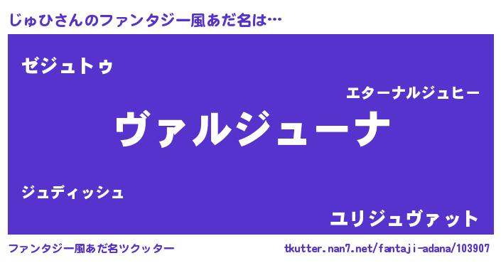 | 男性向けラノベタイトル風あだ名 | 『この素晴らしい世界にじゅひを!』 |
