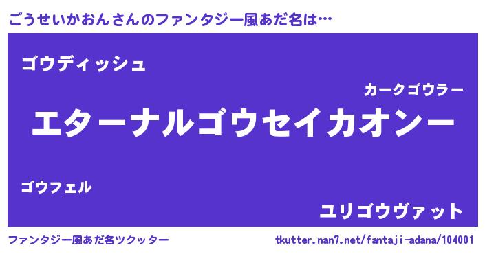 | 女子向けラノベタイトル風あだ名 | 『ごうせいかおんの雑貨屋さん』 |