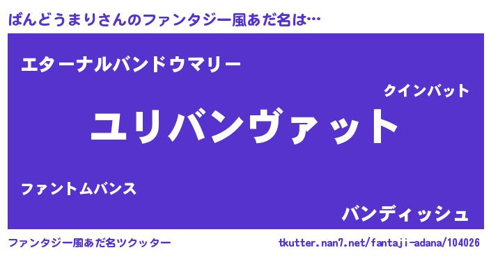 | 男性向けラノベタイトル風あだ名 | 『ばんどうまり~年齢イコール彼女いない歴の魔法使い~』 |