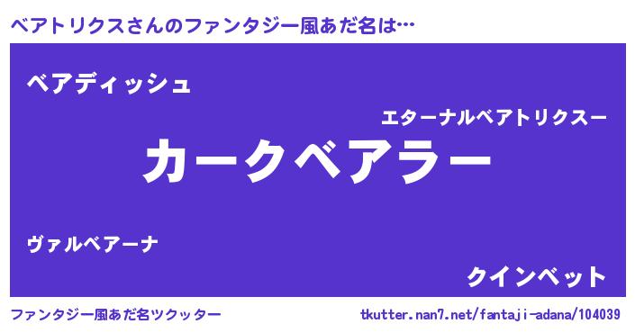 | ヘコむあだ名 | 『ベアトリクス(笑)』『なまこ酢』 |