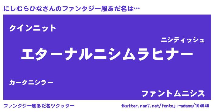 | 肩書あだ名 | 『にしむらひなプロデューサー』 |