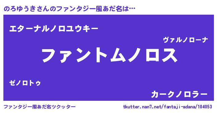 | 男性向けラノベタイトル風あだ名 | 『のろゆうきに滅ぼされるだけの簡単なお仕事です』 |