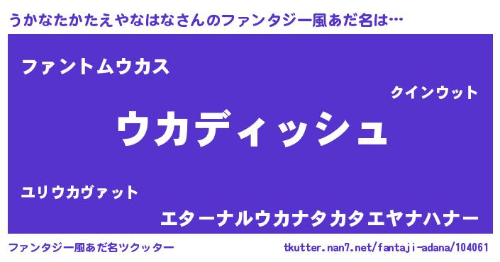 | ヘコむあだ名 | 『うかなたかたえやなはな(小並感)』 |