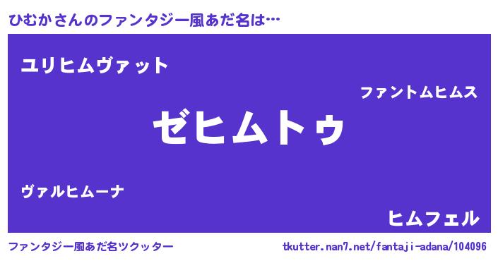 | 男性向けラノベタイトル風あだ名 | 『Re:ひむかから始める異世界生活』 |