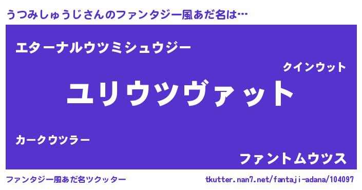 | 男性向けラノベタイトル風あだ名 | 『うつみしゅうじ~年齢イコール彼女いない歴の魔法使い~』 |