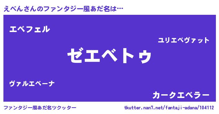 | 男性向けラノベタイトル風あだ名 | 『Re:えべんから始める異世界生活』 |