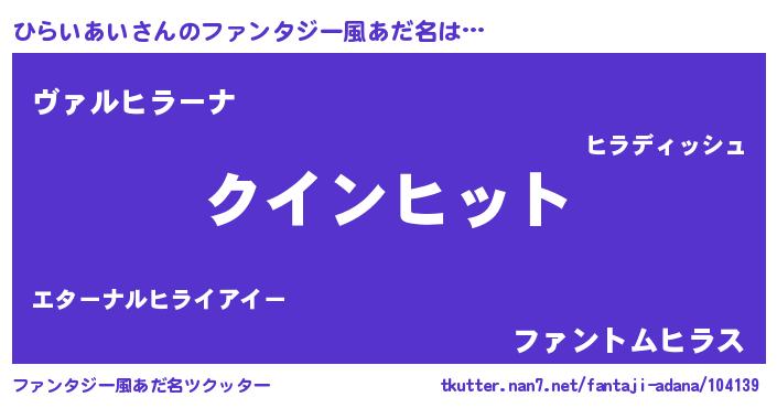 | 男性向けラノベタイトル風あだ名 | 『ノーゲーム・ノーヒライアイ』 |