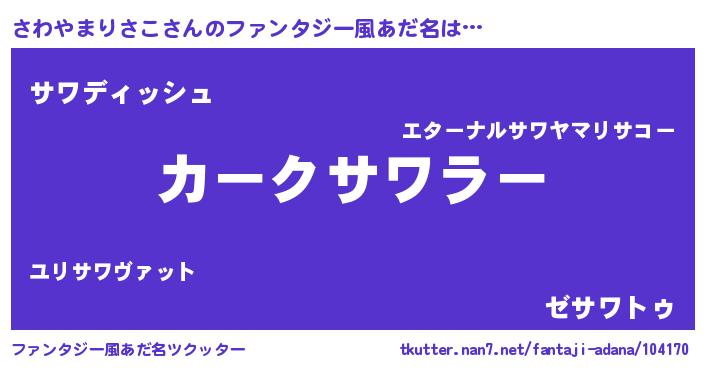 | 欧米人風あだ名 | 『さわやまりさこ・ステッグマイヤー』 |