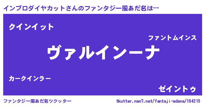 | ヘコむあだ名 | 『インを』『インブロダイヤカット(苦笑)』 |