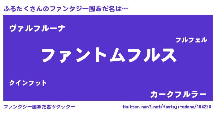 | 自動車の名前っぽいあだ名 | 『フルトルパン』『フウディ』『フンR』 |