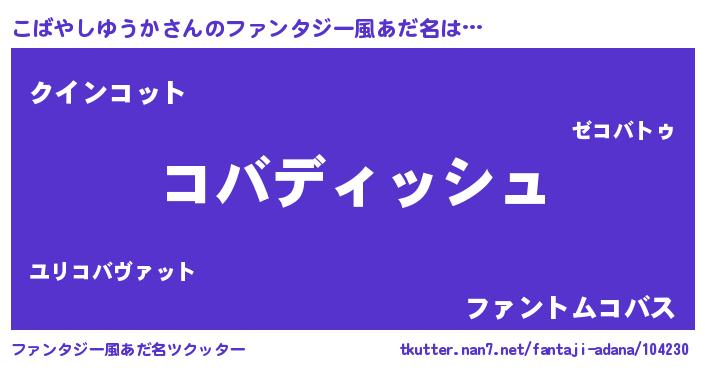 | ヘコむあだ名 | 『こばやしゆうか(笑)』『こば太郎』 |