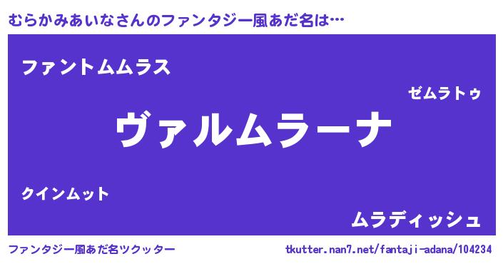 | 男性向けラノベタイトル風あだ名 | 『この素晴らしい世界にむらかみあいなを!』 |
