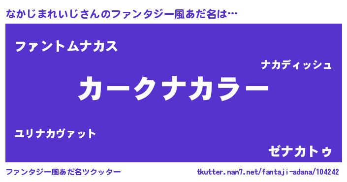 | 胡散臭い通販商品みたいなあだ名 | 『信頼と実績のサプリメント…その名も「なかじまれいじ」』 |