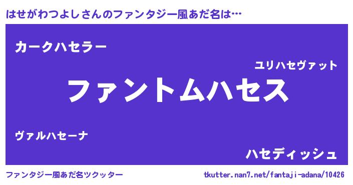 | 男性向けラノベタイトル風あだ名 | 『はせがわつよしに滅ぼされるだけの簡単なお仕事です』 |