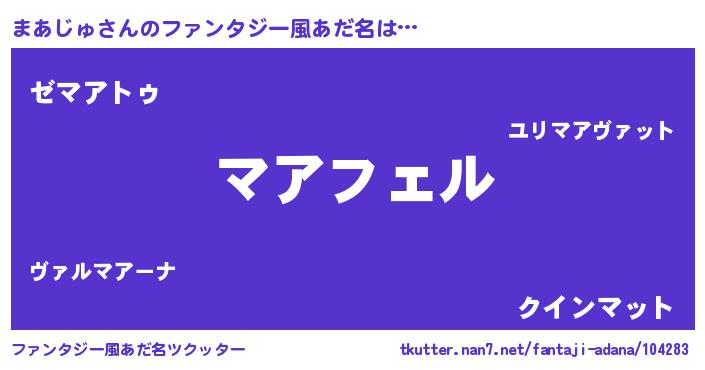 | 自動車の名前っぽいあだ名 | 『マアティマ』『メルマアス・マンツ』 |