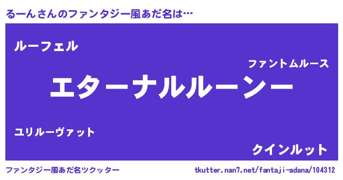 | ヘコむあだ名 | 『酢こんぶ』『るーにー』『るーっ子』 |