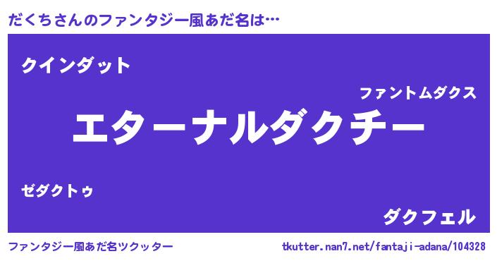 | 男性向けラノベタイトル風あだ名 | 『うちの娘の為ならば、俺はもしかしたらだくちも倒せるかもしれない。』 |