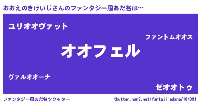 | 男性向けラノベタイトル風あだ名 | 『おおえのきけいじの憂鬱』 |