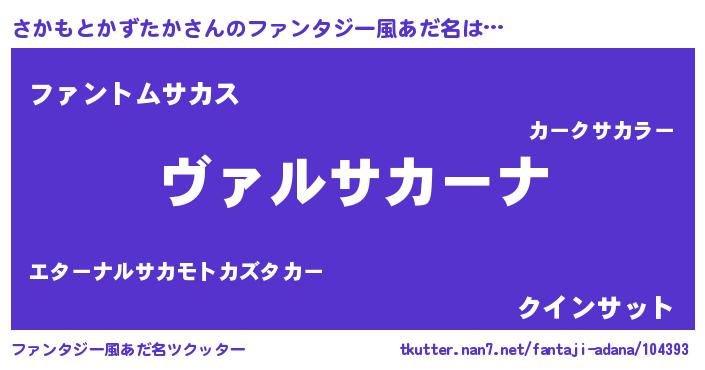 | 男性向けラノベタイトル風あだ名 | 『魔弾の王とさかもとかずたか』 |