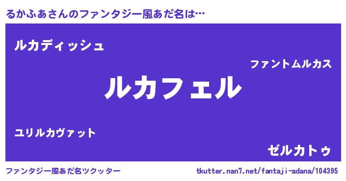 | 意味不明あだ名 | 『ペロリンるかふあ』『永久保存るかふあ』 |