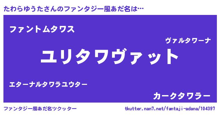 | 男性向けラノベタイトル風あだ名 | 『タワラユウタスレイヤー』 |