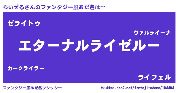 | 意味不明あだ名 | 『らいぜるフォーエバー』『自称らいぜる』 |