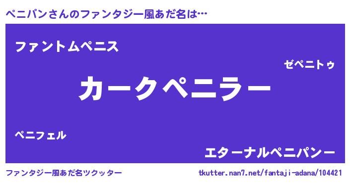 | 意味不明あだ名 | 『とにかく怪しいペニパン』 |