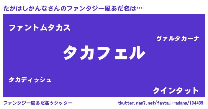 | 男性向けラノベタイトル風あだ名 | 『たかはしかんなの憂鬱』 |