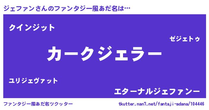 | 男性向けラノベタイトル風あだ名 | 『ジェファンに滅ぼされるだけの簡単なお仕事です』 |