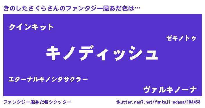 | 女子向けラノベタイトル風あだ名 | 『きのしたさくらの契約王妃』 |