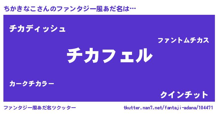| 男性向けラノベタイトル風あだ名 | 『チカキナコアートオンライン』 |