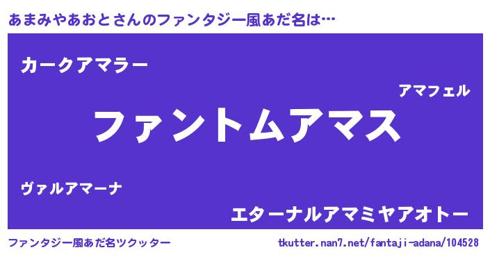 | 男性向けラノベタイトル風あだ名 | 『ダンジョンにあまみやあおとを求めるのは間違っているだろうか』 |