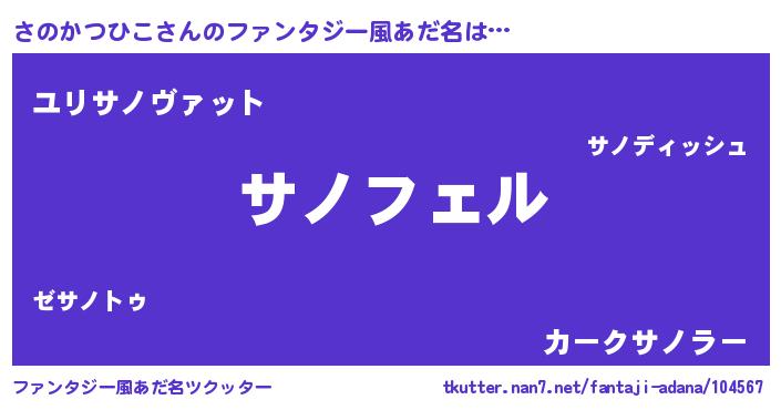 | 男性向けラノベタイトル風あだ名 | 『サノカツヒコアートオンライン』 |