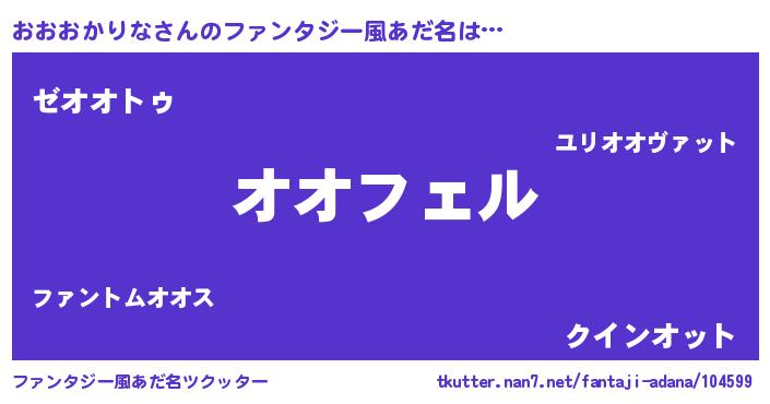 | 男性向けラノベタイトル風あだ名 | 『おおおかりなの憂鬱』 |