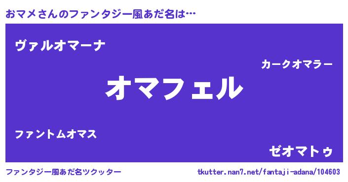 | ポケモン風あだ名 | 『オマチュウ』『オーマイ』 |