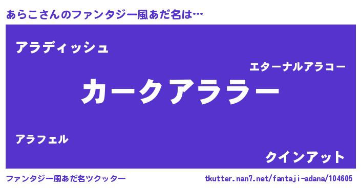 | 欧米人風あだ名 | 『あらこ・ステッグマイヤー』 |