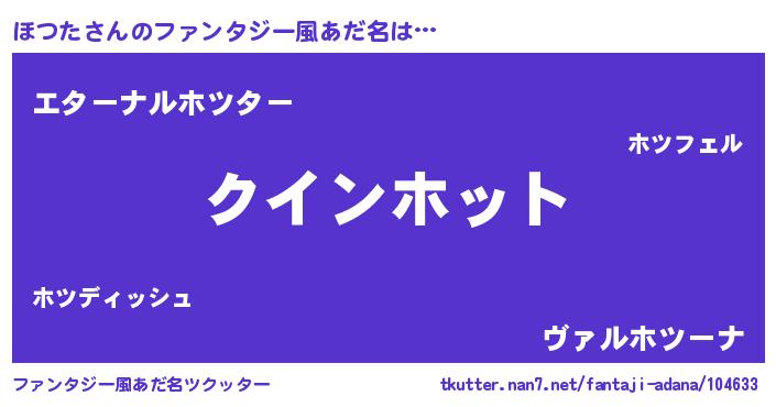 | 女子向けラノベタイトル風あだ名 | 『死神ほつたの再婚』『ほつたの婚約者』 |