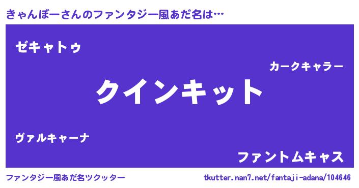 | 男性向けラノベタイトル風あだ名 | 『おまえをオタクにしてやるから、俺をきゃんぼーにしてくれ! 』 |
